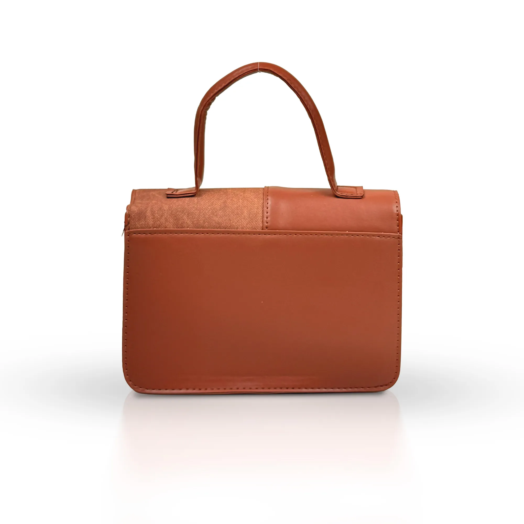 Sleek and modern, the Caramel Patchwork Mini Bag combines smooth and textured panels in a warm caramel finish for a stylish two-tone effect. Its compact, structured design with a flap closure is perfect for carrying just the essentials while keeping your look polished and effortless. A versatile companion for brunch, casual meetups, or evening outings.